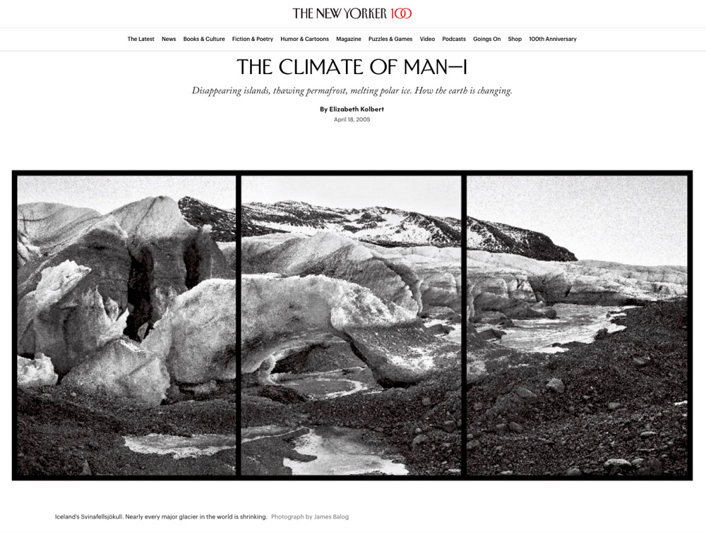 Elizabeth Kolbert’s article “The Climate of Man,” The New Yorker, April 18, 2005. Courtesy of The New Yorker. Online: https://www.newyorker.com/magazine/2005/04/25/the-climate-of-man-i