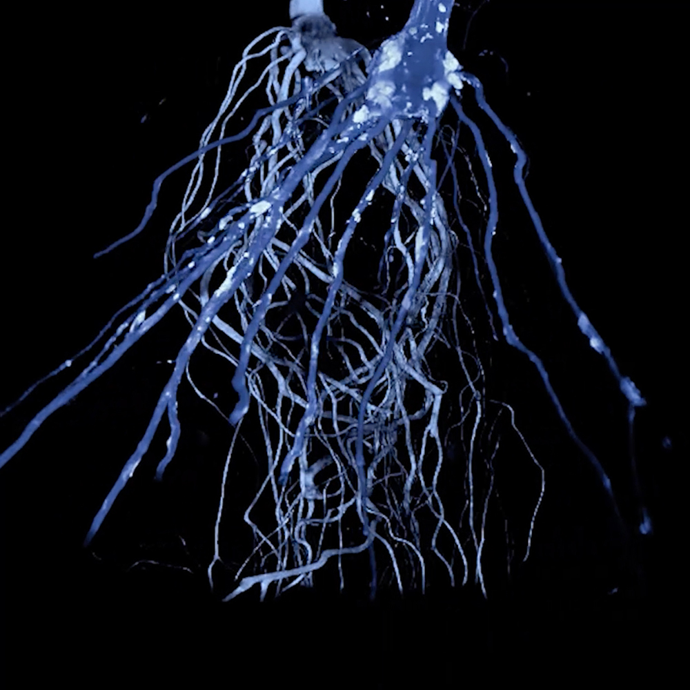 ©Dornith Doherty. Video still from Roundabout (Circuition) single channel video, 3 minutes © 2021 Animation created from CT scans of diverse indigenous American grapevine rootstock. From the project: Roundabout (Circuition).