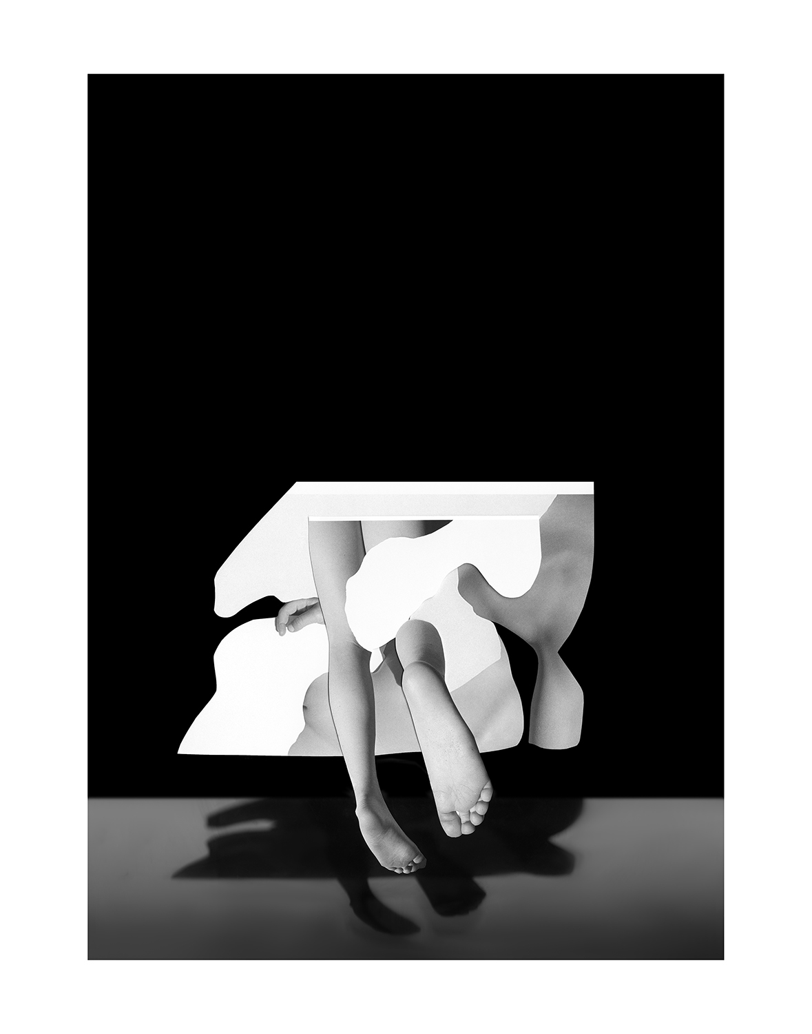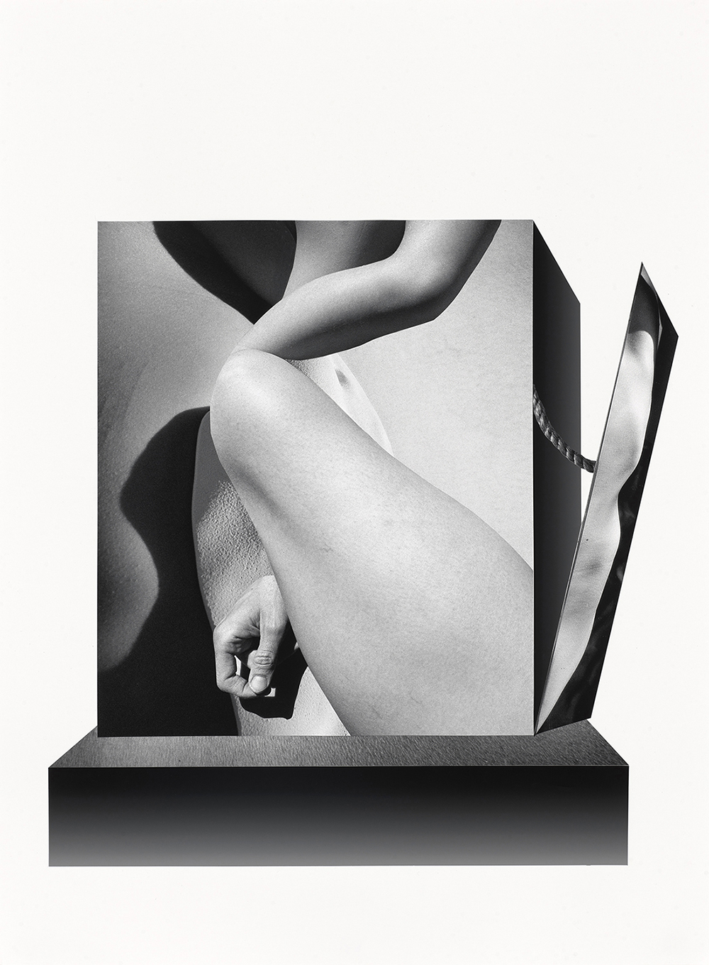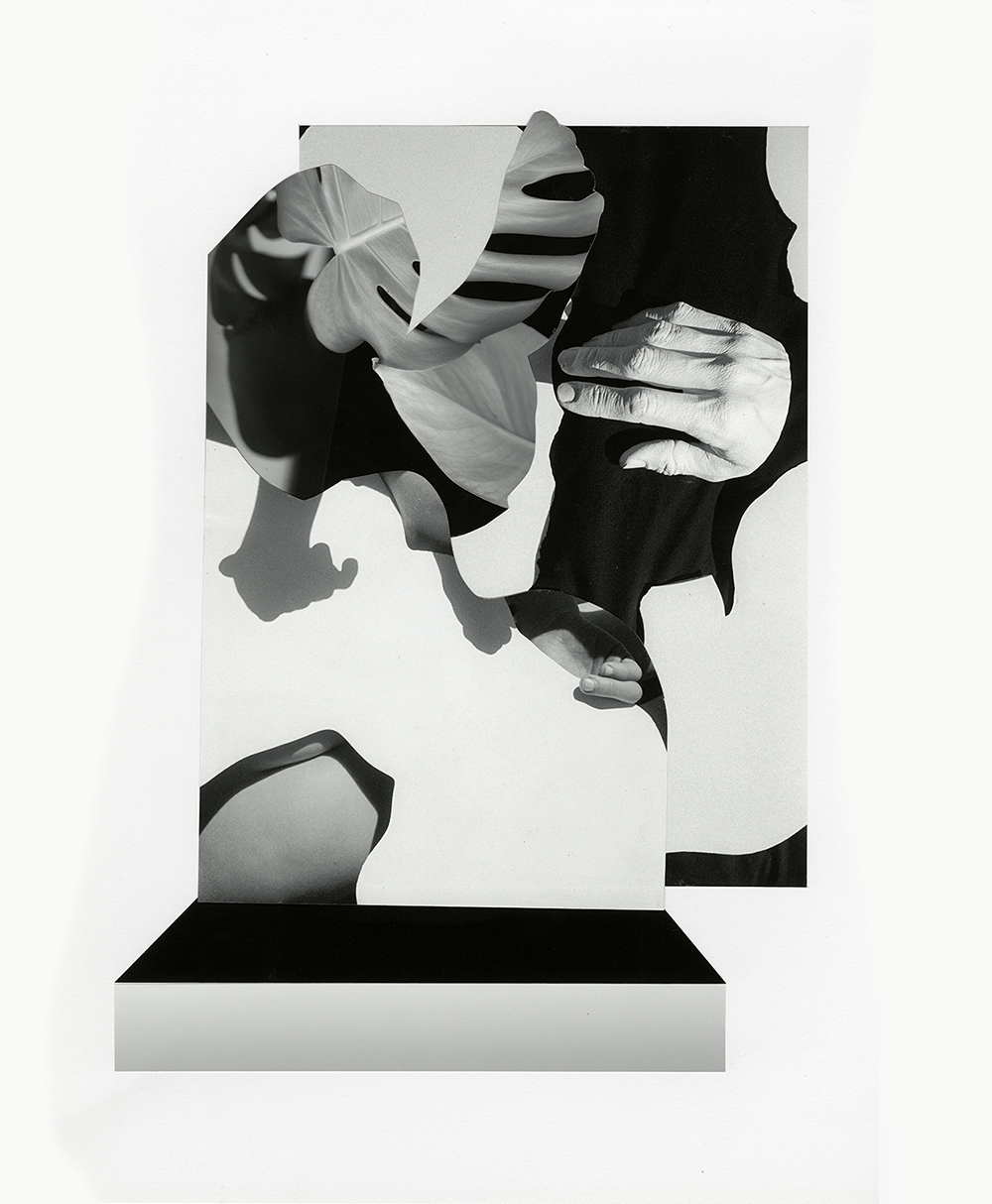 In disorienting reconstructions, Woods uses a vocabulary of bodily forms that repeat in variations, reflecting the repetitive and often confining aspects of nurturing. But it is in these tight spaces where Woods’ work opens to possibility. In surreal juxtapositions, limbs float, bodies merge, time and space dissolve. Plaster casts of her children’s hands record time tenderly and also look like stark fragments from classical antiquity. Organic shapes obliterate but can be openings. There is an austerity in the black and white presentation that abstracts rather than sentimentalizes. The installation, curated by Allie Haeusslein, extends the work into sculptural assemblages where pedestals and objects cast shadows and layered imagery spills into space.