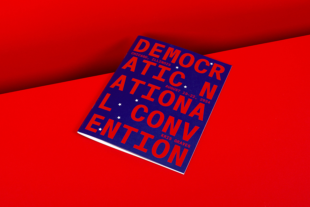 Republican National Convention / Democratic National Convention (Kris Graves, KGP) have cover designs that show the unity and division of the two main American political parties through the colors of the American flag. One cover gives dominance to Democratic blue and the other to Republican red. Through the letters, shared use of color and shifting placement of stars, a visual language emerges that’s strongly typographic and reminiscent of a pamphlet that asserts political persuasion.