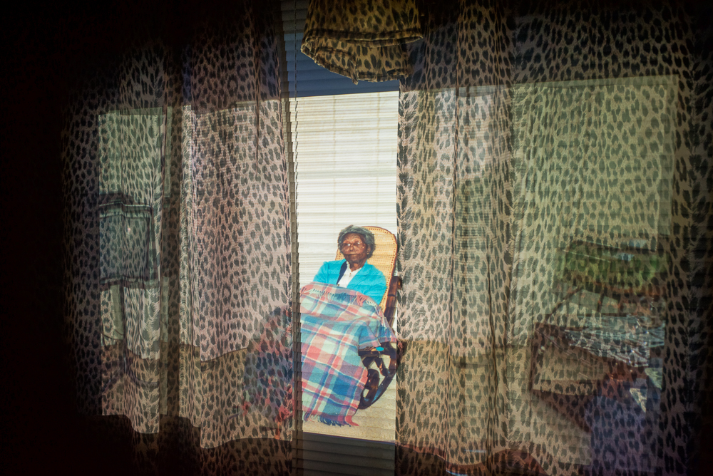 © Rachel Elise Thomas, Great-grandmother, Lillian (Crowded House), 2022. From Thomas: When I was a child, my paternal great-grandmother lived with us for a short period of time. I was too young to be inconvenienced by her presence in our home–I actually liked it, and so did my parents to some degree (even though she stressed them out). My great-grandmother enjoyed sitting in the living room where she would people watch in her rocking chair–keeping an eye on everything. She eventually moved to a nursing home and when she did, I was inconsolable. I missed her presence in our home.