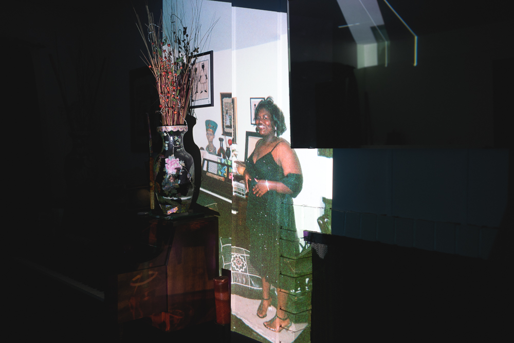 © Rachel Elise Thomas, Homecoming Dance (Crowded House), 2022. From Thomas: The projected image of me was taken in the living room on the night of the Homecoming dance back in 2005. It was my senior year–the first and only Homecoming dance I ever attended.