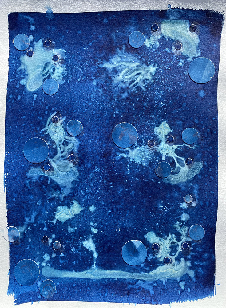 I have an ever-growing list of artists that inspire me, especially artists practicing cyanotype and other alternative processes. I admire Melanie Walker, Jackie Mulder, and Terri Warpinski for their dimensional mixed media works, and Paula Aranoa for her unique diptychs. I want to thank Kimberly Chiaris, Emma Powell, and Diana Bloomfield for sharing their skills and passion for alternative processes by providing a cyanotype foundation and open door for discussion.