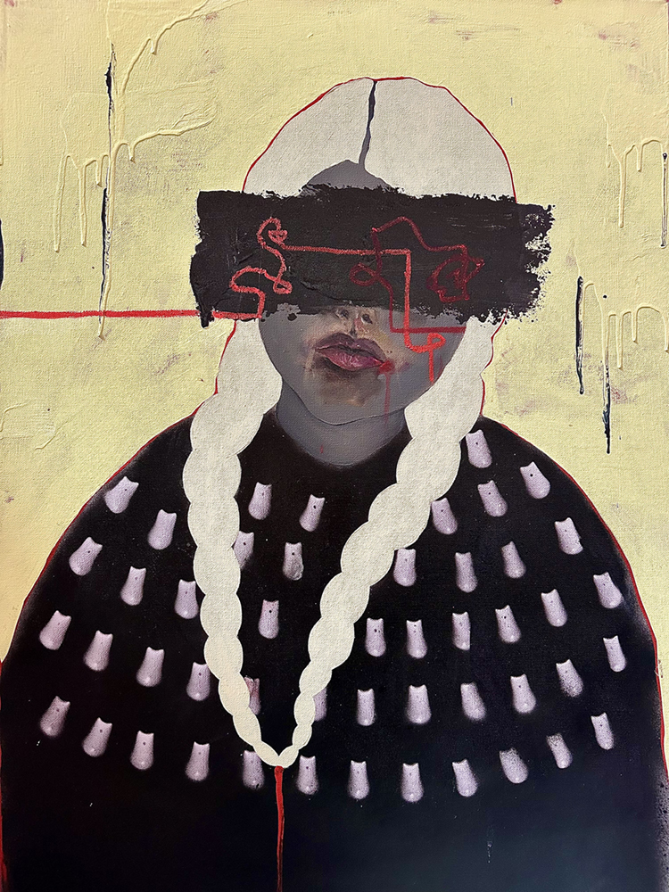 Danielle SeeWalker (Lakota) is a painter I have long admired for her honesty in bringing awareness to the rights of Native Americans. Including work that addresses the MMIWG catastrophe in the Americas was vital to me in making this show feel complete.