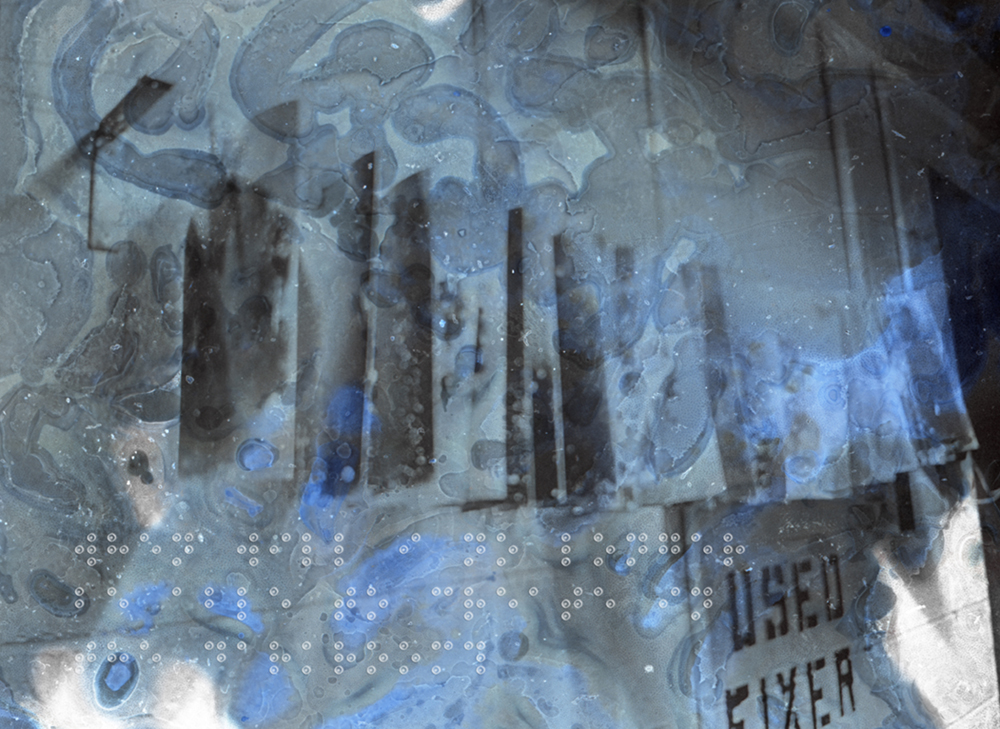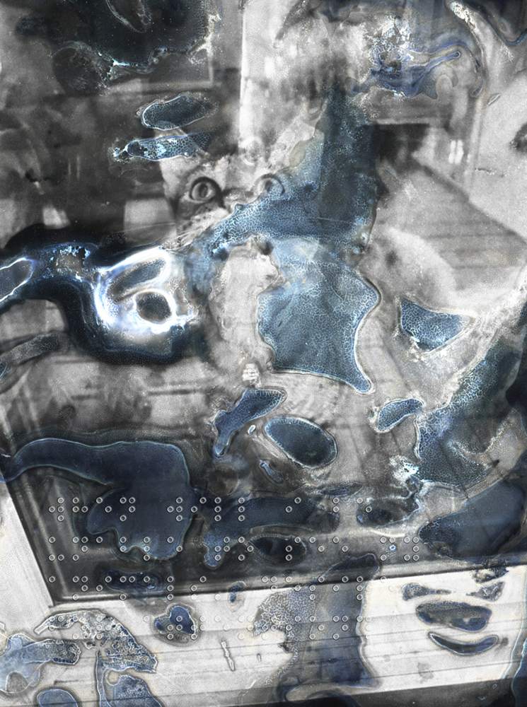 If a camera can be compared to an eye, a disintegrating negative can be compared to a diseased retina. In this work, When will I go blind?, I use antiseptics, dry eye ointment, and boiling water to disintegrate images that feature the people, places, and things that bring me joy. As a photographer with Bardet-Biedl Syndrome, I am terrified and anxious about losing my vision. Without being able to see, I will be limited to my visual memories and not be able to engage with the world the way I used to. What will happen if these memories fade? Will I lose part of myself by having to engage in the world differently? I made this work while I am still sighted as a coping mechanism to process the initial stages of the disease. I hope this work connects with others who have gone through something similar, with the overlaid braille offering an exclusive entry point for them. For people who have never experienced anything like this, I invite them to visualize and feel my fear of loss through this work.