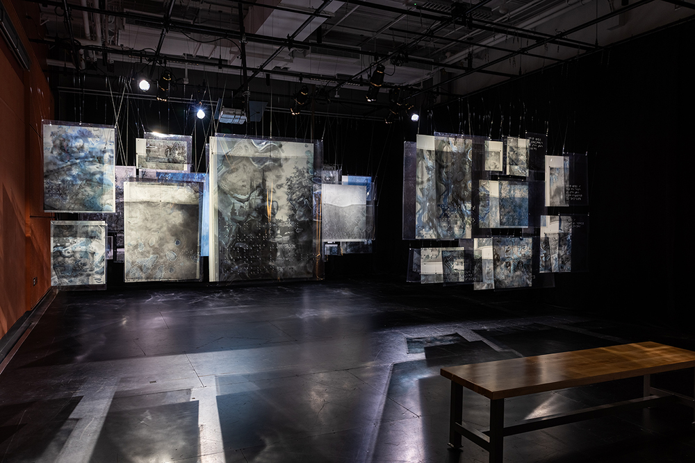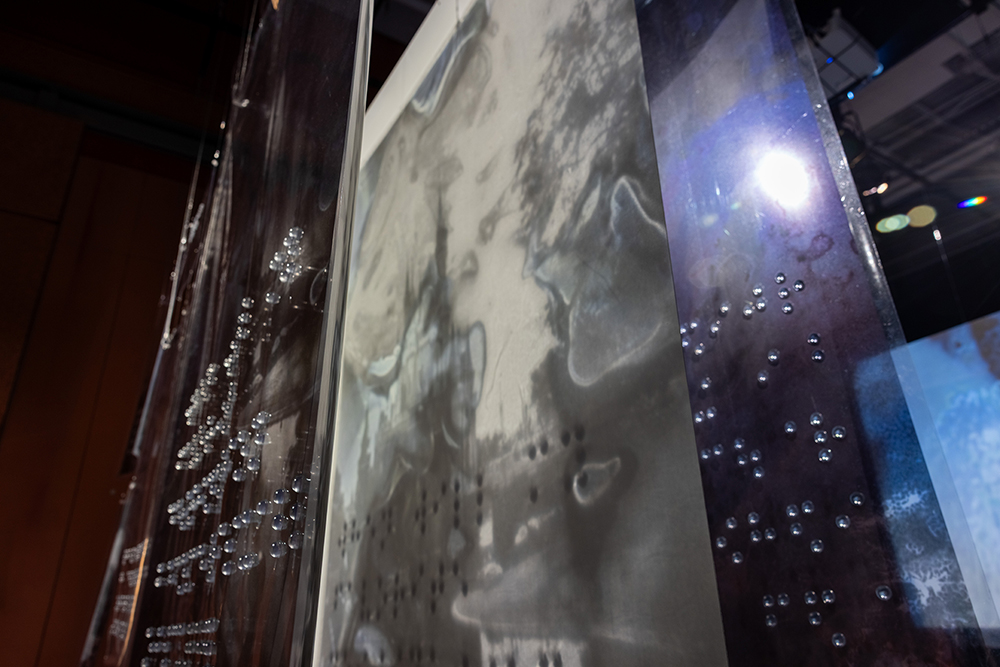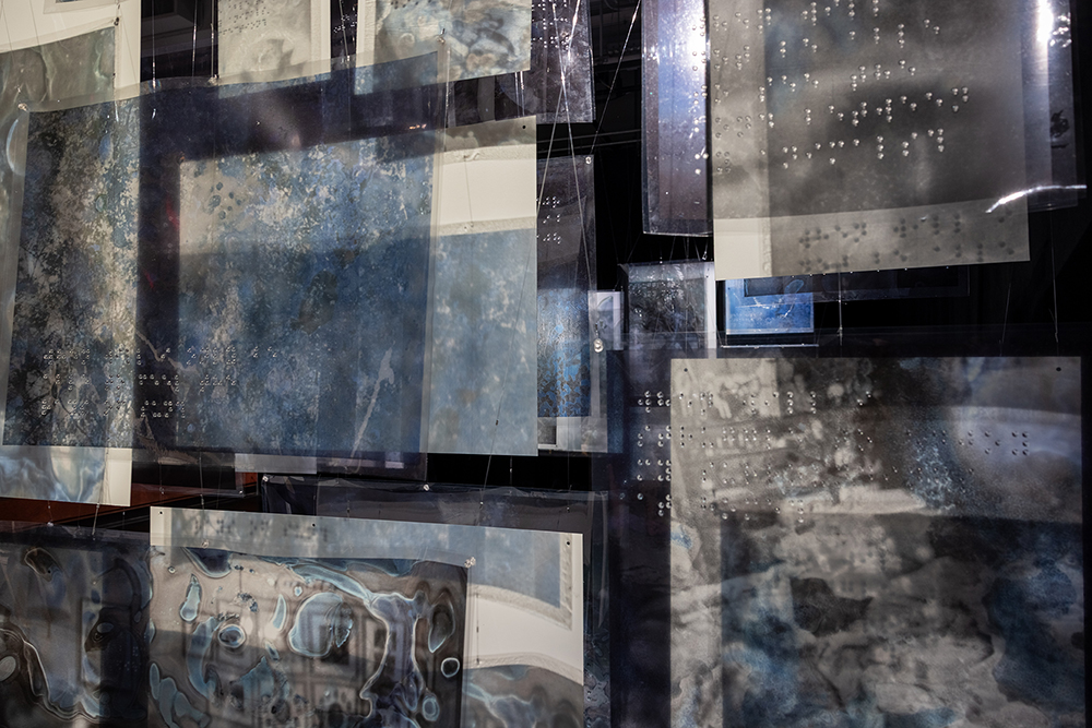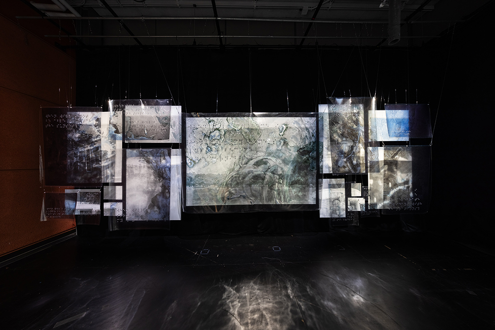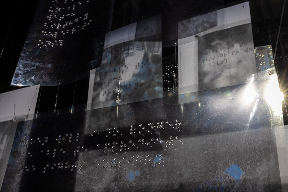Installed as large-scale hanging transparencies, the work amplifies the magnitude of the condition, with its emotional and physical implications evoking the complexity of navigating a visual world in transformation.