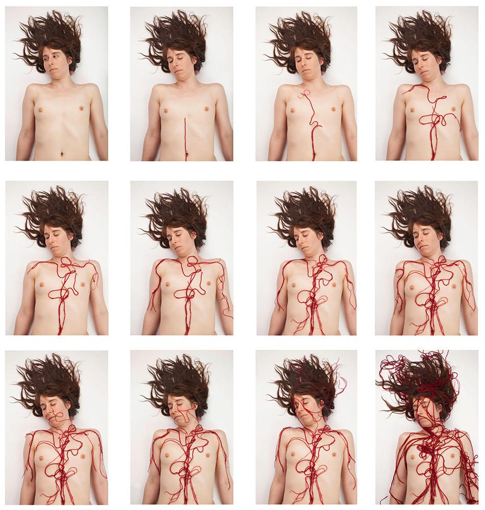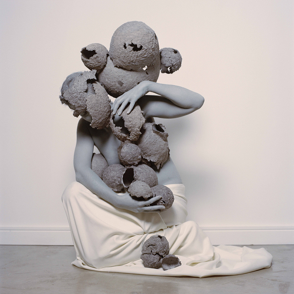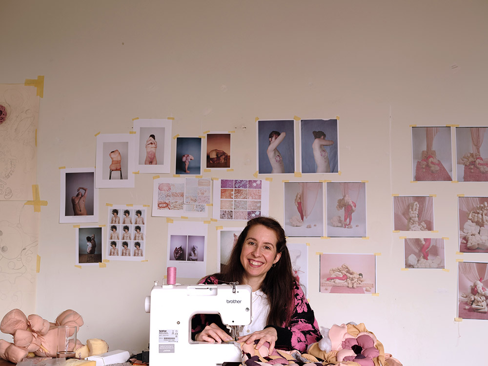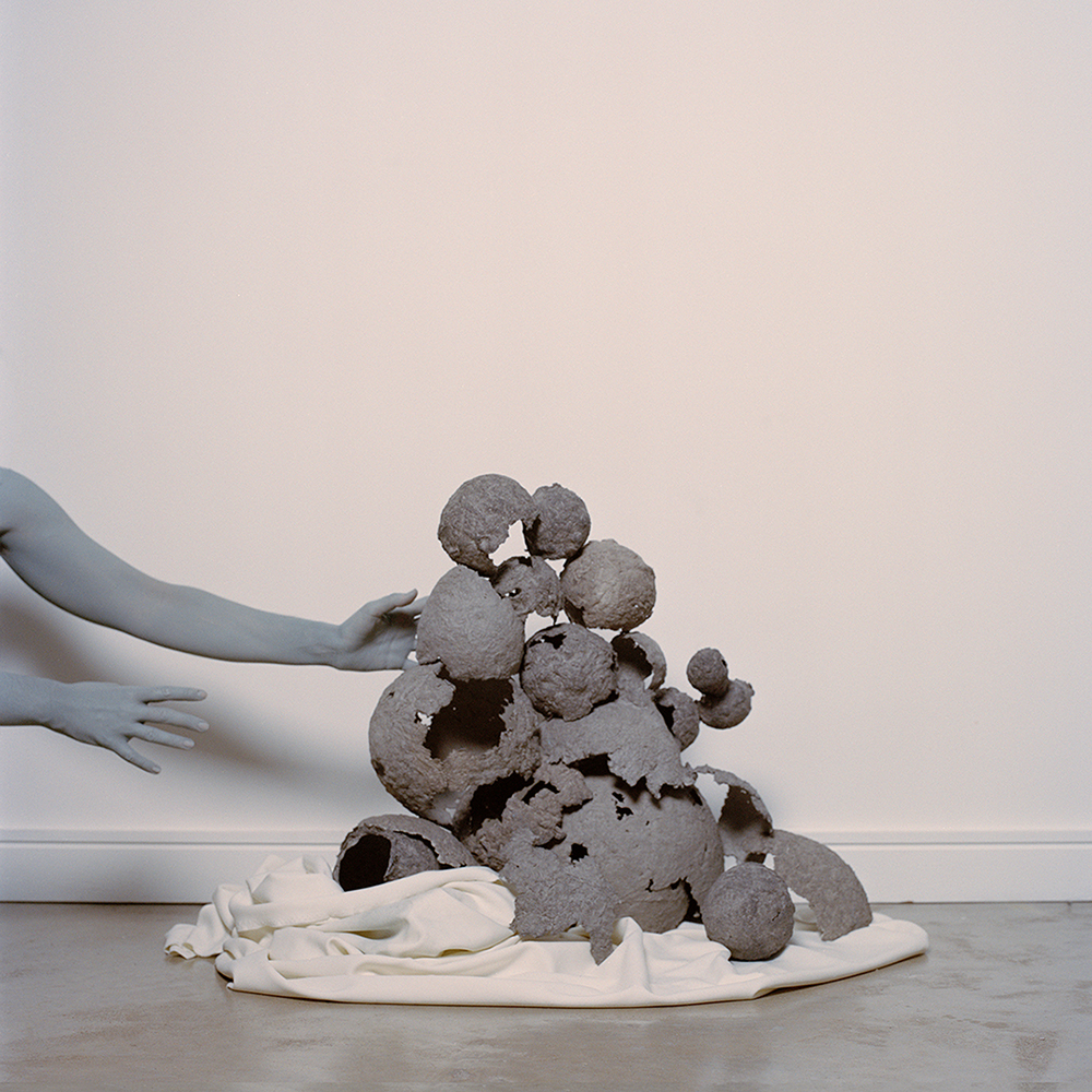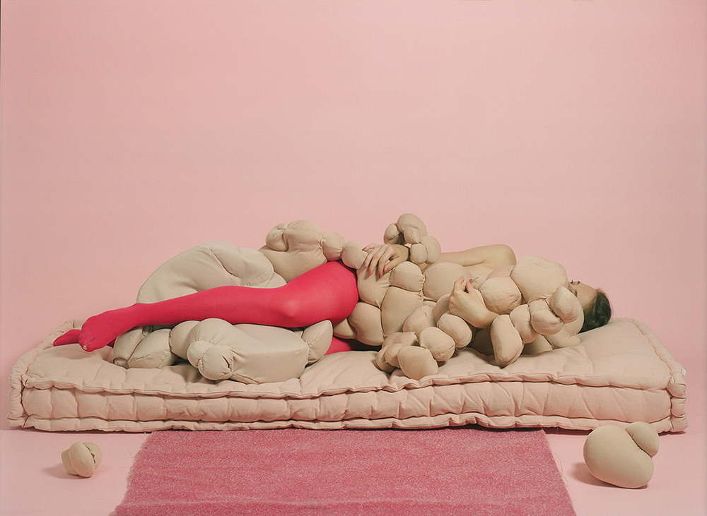 Then I plan photography sessions. The work is a process of interacting with objects I have created, things that don’t exist in everyday life. I make things that don’t have a place in reality, like a way of representing what’s going on inside my body. I usually have some help during the shoots, especially for self-portraits, as it’s physically difficult to manage both the camera and multiple sculptural elements at once.