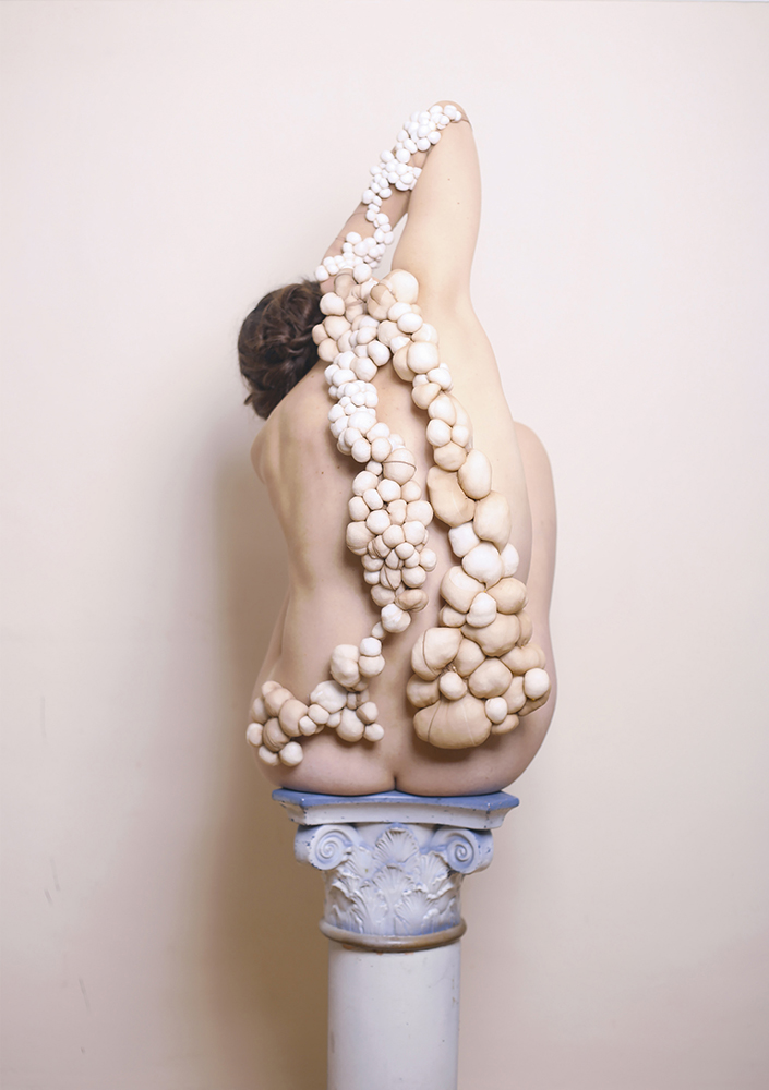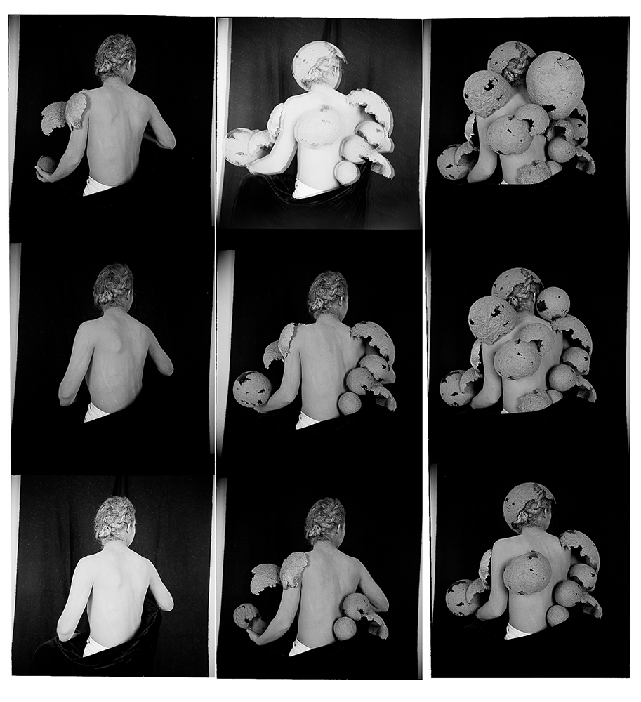 Those dualities – the union between two divided worlds – s where my art practices fall. By using photography, sculpture and mixed media practices, I play around with temporality, with the fragile existence of our bodies, and I reflect on the vulnerability of the physical shell, drawing parallels with classical references and our inherited cultural notions of the perfect body. By layering these concepts visually around my body, I aim to highlight the politics of body representation.