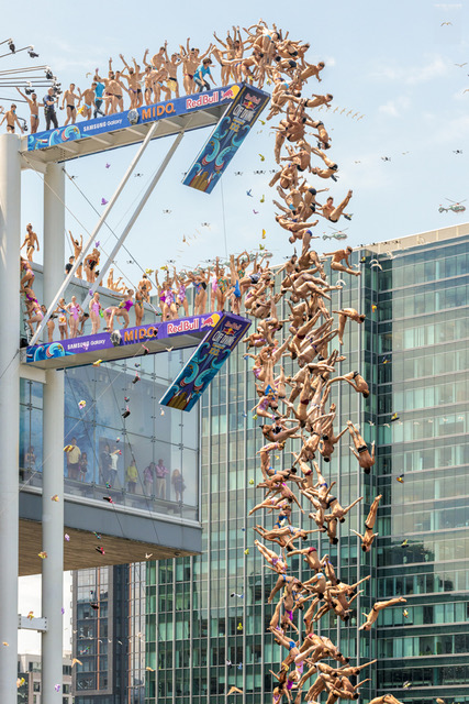 Quincey Spagnoletti: I have to ask you a technical question. You use colored water in some of your recent compositions, where you throw the water up into the air. Anyone who has ever used a layer mask understands the level of difficulty to mask something that doesn’t have a defined outline to it. It makes me think about your waterpolo images and it must have been incredibly difficult to mask all of the water droplets that surrounded the athletes. Can you explain this process?