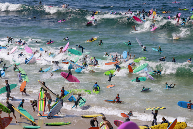 Pelle Cass: The tossed water is much easier than you would think against a blue sky. Photoshop has some silhouetting features that have gotten better every year. I used those and it wasn’t a problem because with those droplets in the air they’re frozen, and they’re so distinct they do have defined edges. It’s actually easier to work with water than you think because it’s transparent. It looks perfectly natural to have some water becoming more transparent by my hand, transitioning into other water. In the waterpolo picture I like best, I looked for all the foamiest white parts of it and it really wasn’t hard because you get a big foamy spot and then around it you get an aurora of bluer water that was easy to blend. The hardest photo technically was the Surfing photo. To make it look natural, the level of the water changed so that a person surfing on water could be anywhere from 2-feet from the sand all the way up from 10-12-feet. I didn’t have to deal with that dimension of height and so I had to build a background of real waves. If somebody happened to be at the right height to fit on that wave, then I would use them. If they were at different heights they would have been up to their knees in the water. That one was the hardest to conceptualize and to figure out that I had to build a scene of waves first and then look for people. My main rule that I have is everything appears in its absolute real spot. I don’t move it. I couldn’t just put a surfer down so they look natural. It is harder but that’s how I do it with water.