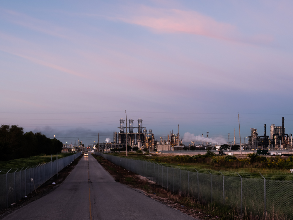 I began photographing Texas’s 600-mile coastline in 2019, visiting wildlife refuges on the Bolivar Peninsula and beach communities like Galveston and Surfside. As the project developed, I photographed communities around oil refineries and export terminals, including North America’s largest refinery, the Motiva facility in Port Arthur. Most recently, I traveled to Brownsville and South Padre Island, where I photographed the mouth of the Rio Grande and Starbase, the SpaceX launch site.
