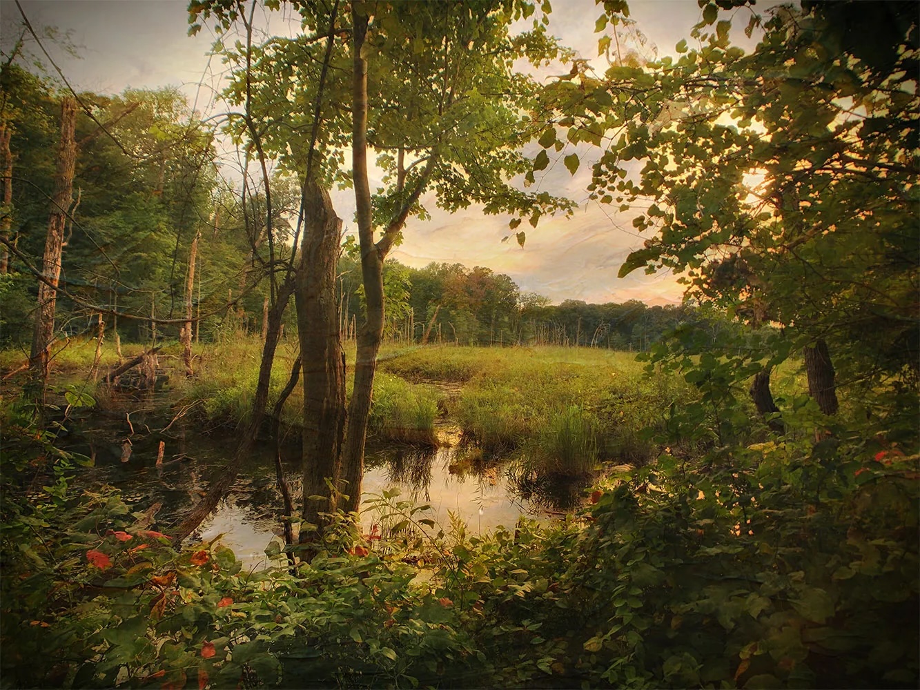 The Hudson River School painters significantly influence my landscape work. They idealized a vanishing wilderness as the country, in the first third of the 19th century, moved from an agrarian to an industrial society. When I create a romantic landscape, I’m also romanticizing and idealizing the memory of places I’m connected to, as these landscapes rapidly transform due to climate change.