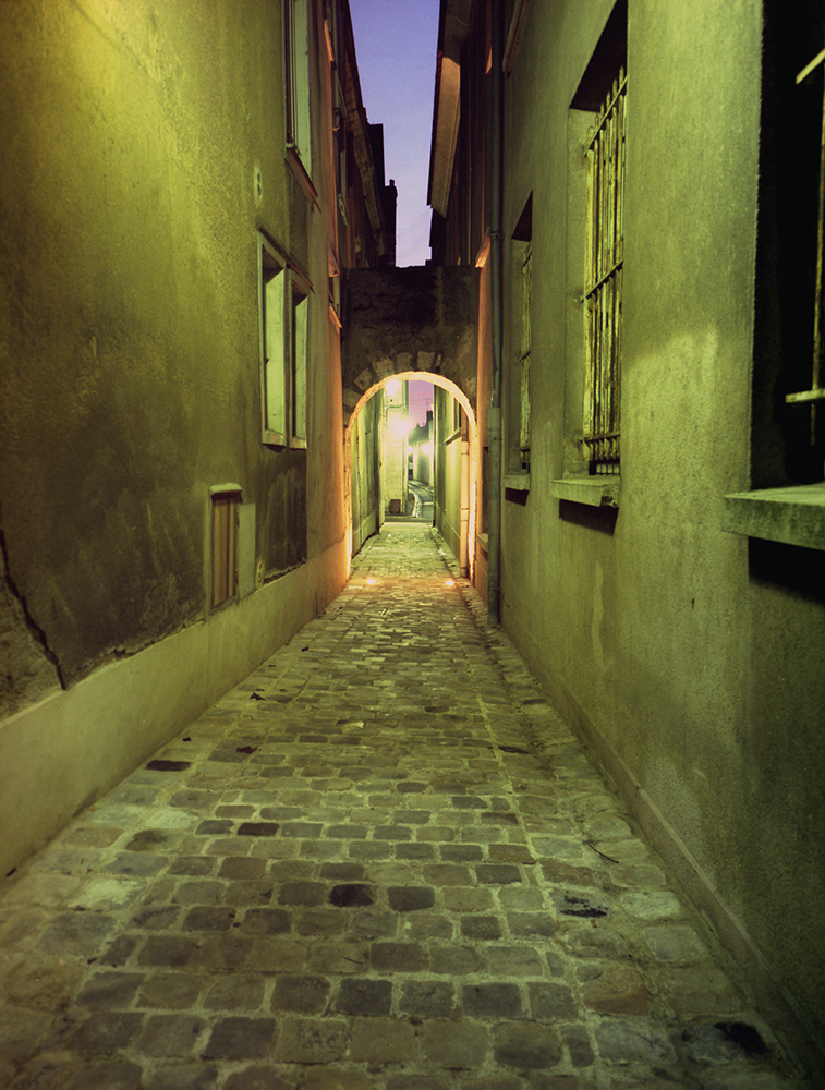 Q: Many of your images are void of humans—are you walking the streets at night alone? Do you always feel safe in doing so?