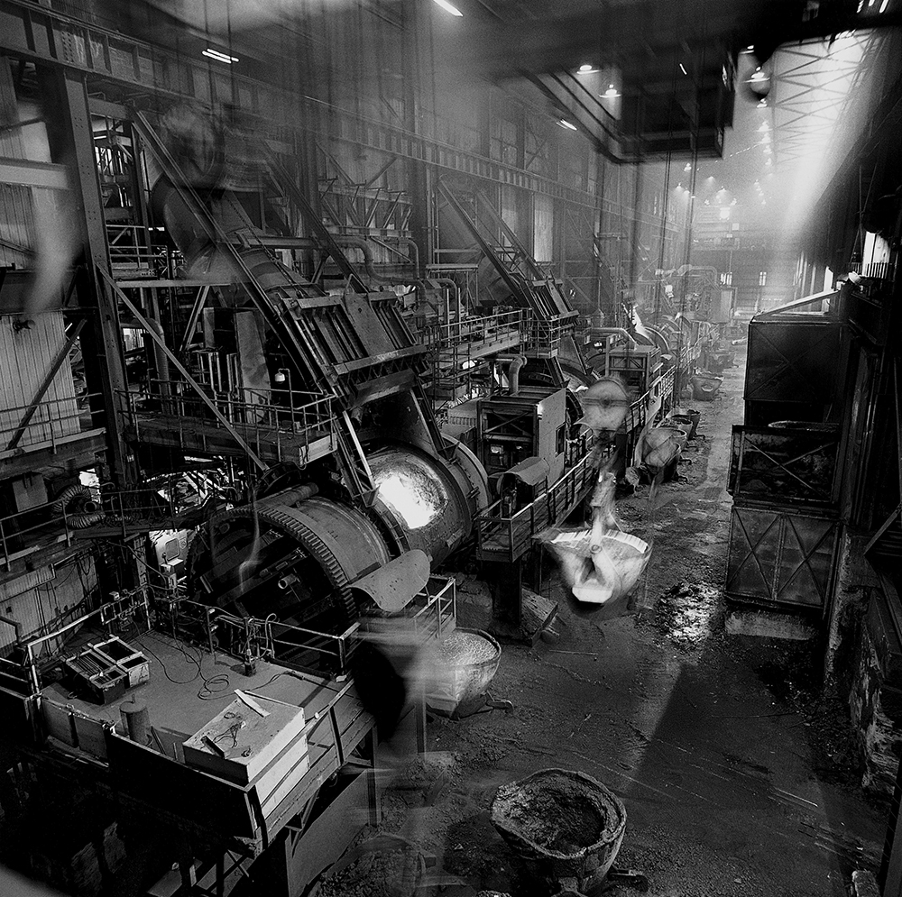 Converter aisle, Falconbridge Smelter, Falconbridge, Ontario. From the book Cage Call: Life and Death in the Hard Rock Mining Belt. An in-depth project spanning over 12-years examining communities in one of the richest mining regions in the world located in Northwestern Ontario and Northeastern Quebec in Canada. (Photo by © Louie Palu/Agence VU)