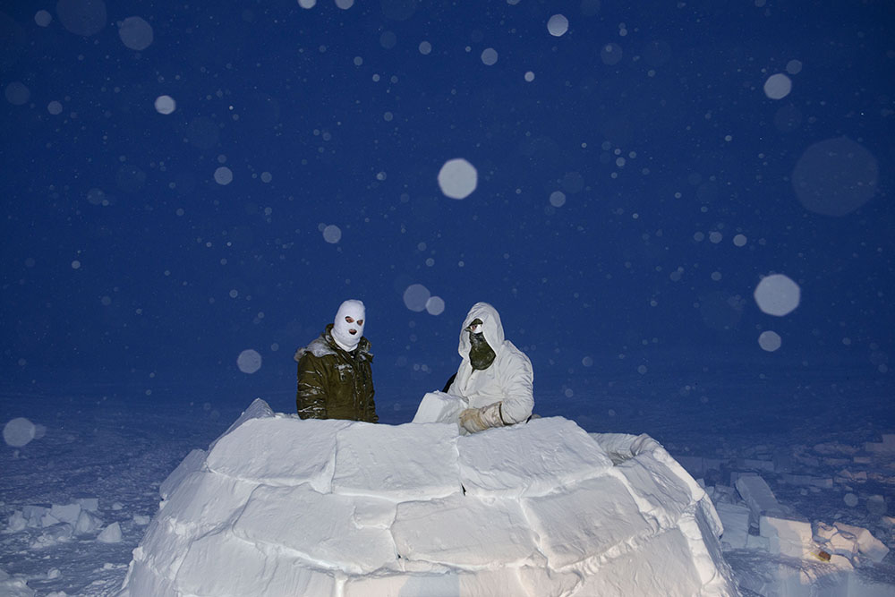 Non-indigenous Canadian soldiers build traditional Inuit igloo’s as an improvised survival shelter near a camp at the Crystal City in Resolute Bay, Nunavut, Canada. (Photo by © Louie Palu/Agence VU)
