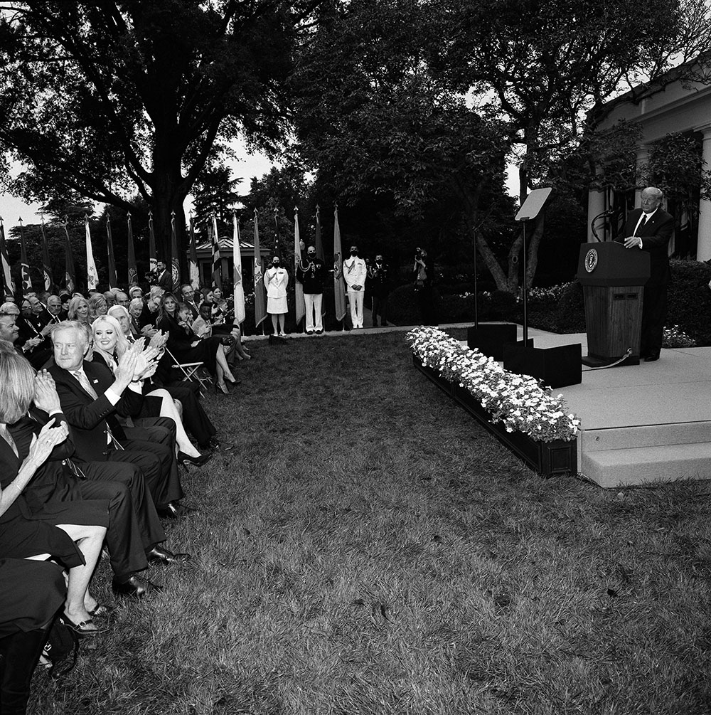 Front row at the White House in the Rose Garden President Donald Trump announcing Judge Amy Coney Barrett’s nomination to the U.S. Supreme Court. (Photo by © Louie Palu/Agence VU)