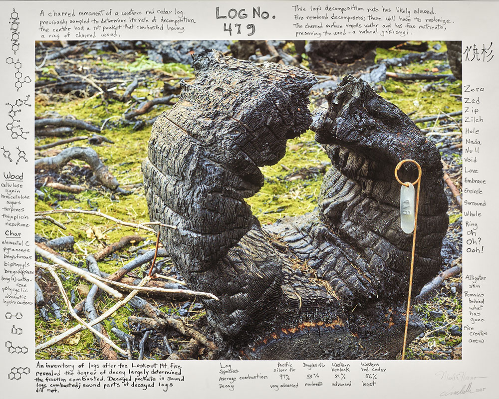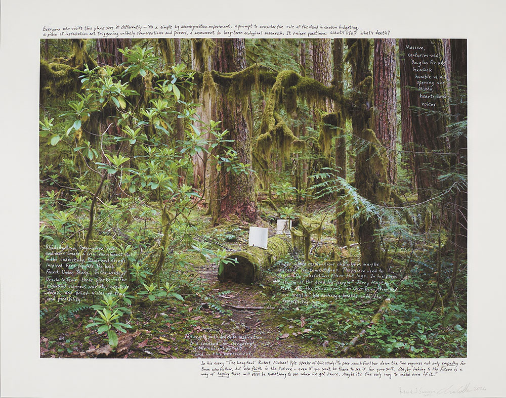 Q: Your more recent work, part of Naturalists of the Long Now, is deeply tied to the scientific study of decomposition and carbon storage. How do you see your role as an artist in translating this long-term ecological research into a visual and emotional experience?