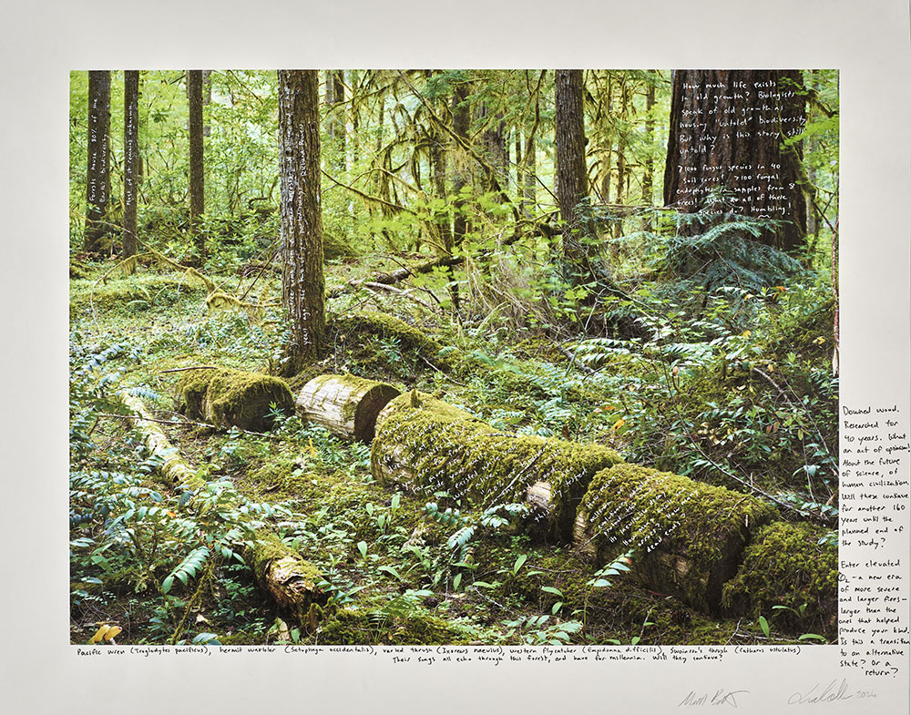 Q: The annotations from scientists and writers have become integral to the work. How did these collaborations shape your understanding of the forest and influence your photography?
