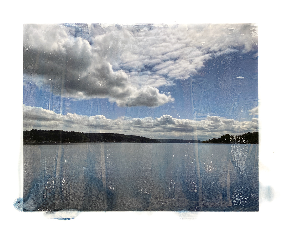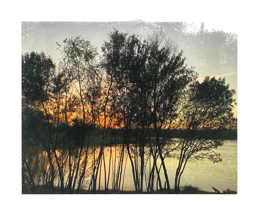 At the same time, the forest—where much of the imagery was made—served as a refuge. It was a place of quiet, a space where I could breathe deeply and begin to process everything that felt fractured. The physical damage to the images contrasts with the healing nature of the subject matter: light filtering through trees, open skies, the reflections and ripples on the water.