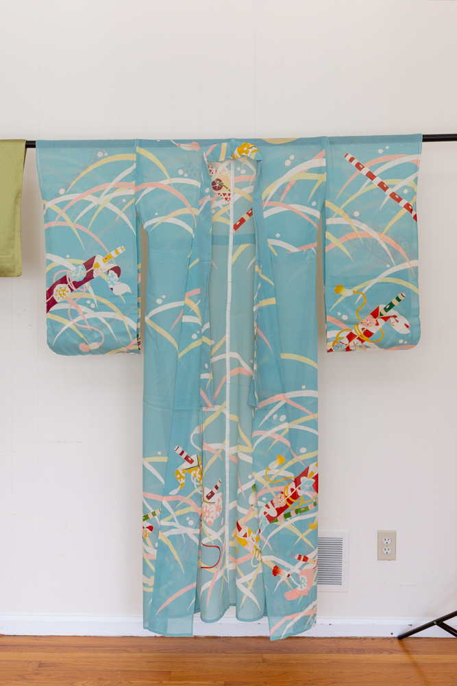 In New York, caring for the kimonos became a seasonal ritual. I practiced mushiboshi, the late-summer airing of garments to get rid of moisture and insects. I would notice creases, stains and the lingering smell of mothballs that reminded me of my grandmother’s closet. As I archived these items, I began thinking about how to share them with my daughters in a meaningful way. I wanted to leave behind something they could understand and connect with; so that they remember a story that mattered to me.