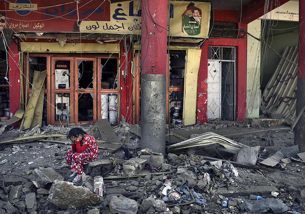 ©Carol Guzy, A little girl holds her head in her hands amid ruins of the Old City in West Mosul, Iraq on July 6, 2017. Most who survived now face an uncertain future, forgotten in the limbo of IDP (Internally Displaced Persons) camps. The scars of emotional trauma are even more difficult to heal than the physical wounds. Their lives are shattered, they lost loved ones and all personal belongings, while surviving day to day, in non-stop terror, between suicide bombs and repressive ISIS doctrine for three long years. The war in Mosul is over, but it left a society in ruins and a continuing humanitarian crisis for these victims facing an uncertain future. SCARS OF MOSUL, THE LEGACY OF ISIS STORY SUMMARY: The self-proclaimed Islamic State formed by ISIS, ruled over the civilian population of Mosul until Iraqi forces waged a fierce battle to liberate the ancient city. The citizens who called this home were trapped or held captive as human shields. Wounded and weak, they arrive at a medical triage and transport area near the Old City, struggling to grasp the remnants of their lives. The war is over but its aftershocks remain in a massive humanitarian crisis.