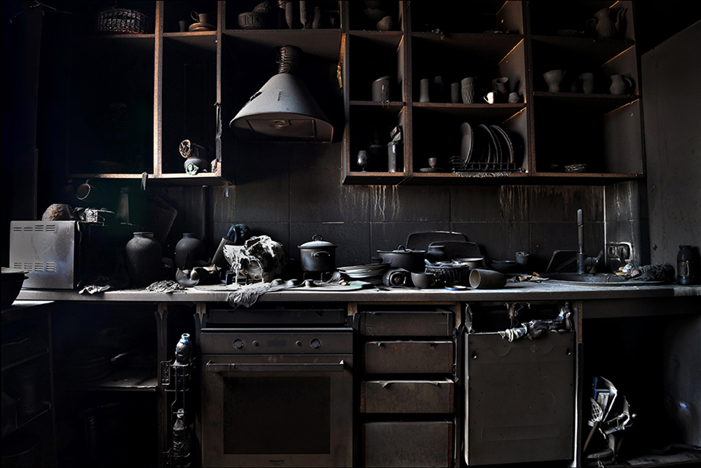 ©Carol Guzy, LIFE, INTERRUPTED. Borodianka, Ukraine. April 21, 2022. SUMMARY: Eerie paintings in shades of burnt sienna. Remnants of everyday life, frozen in a macabre stillness at the precise moment time stopped when Russian bombs rained down on Ukraine’s dwellings in liberated towns of Irpin, Borodianka and Kharkiv. Baby cribs and wheelchairs. A kitchen table still holds food left uneaten. What were they cooking that last day of normal? Twisted metal, empty chairs, melted microwaves. Charred cameras that once held tender family photos. A coffee cup sits on a table near a recliner, singed and flaking. Precious mementoes reduced to dust. Yet Exquisite light kisses the scorched palette. Lives interrupted. Or extinguished. Too painful to ponder what the power of these weapons of destruction does to human flesh at the point of impact. Civilian things. Not the stuff of combatants. Humanity’s hopes, dreams, loves – in war, they are merely ‘collateral damage’. A popular cat café is in ruins, once the scene of camaraderie and conversation over cappuccinos. Broken glass becomes a metaphor for shattered lives. Survivors, saved from the bombardment by a fickle destiny of circumstance, visit in bittersweet homecomings to pick through pieces of their former reality. Others will never return. Their life’s breath now a faded memory among precious keepsakes scattered in living rooms of ash.