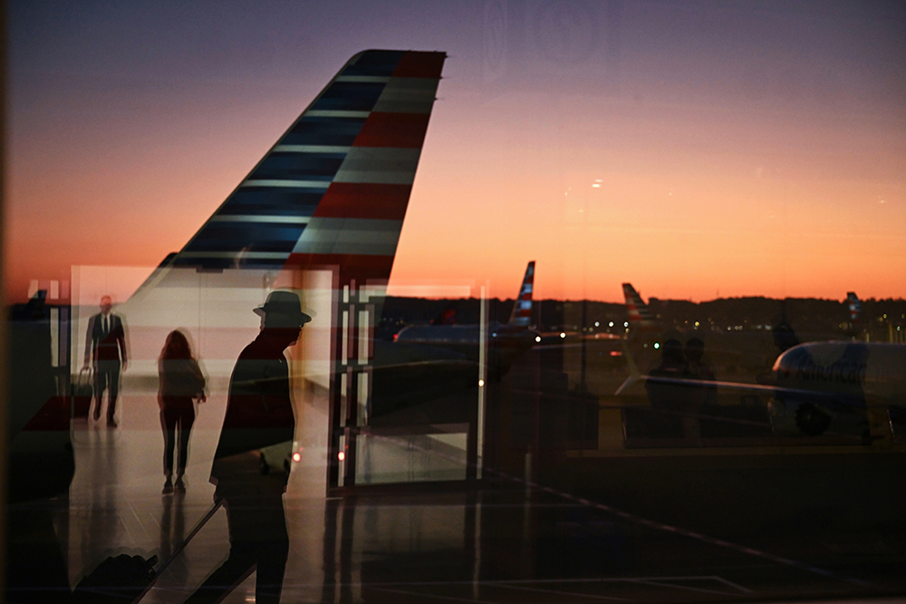 Travelers are seen at sunrise at Ronald Reagan Washington National Airport on Tuesday October 22, 2024 in Arlington, VA. (Photo by Matt McClain/ The Washington Post)
