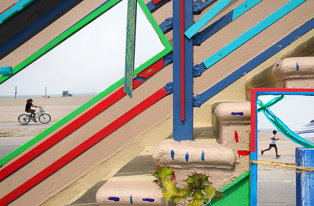 People are reflected in mirrors along a staircase at a business on Venice Beach on Monday August 16, 2021 in Venice, CA. (Photo by Matt McClain/ The Washington Post)