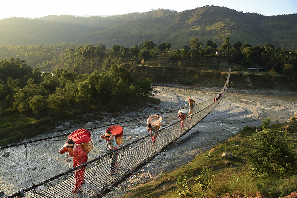 ©Matt McClain, Nepal, People cross a bridge on Sunday May 03, 2015 in the Nuwakot District of Nepal. A deadly earthquake in Nepal has killed thousands. (Photo by Matt McClain/ The Washington Post)