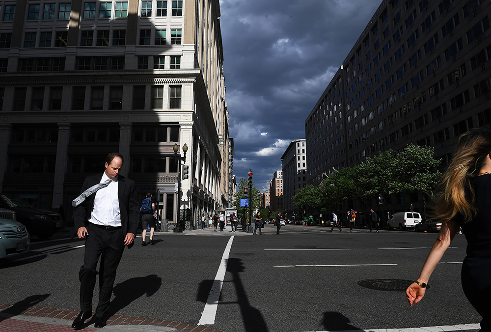 People cross 13th St. NW during the evening rush hour on Tuesday May 02, 2017 in Washington, DC. (Photo by Matt McClain/The Washington Post)