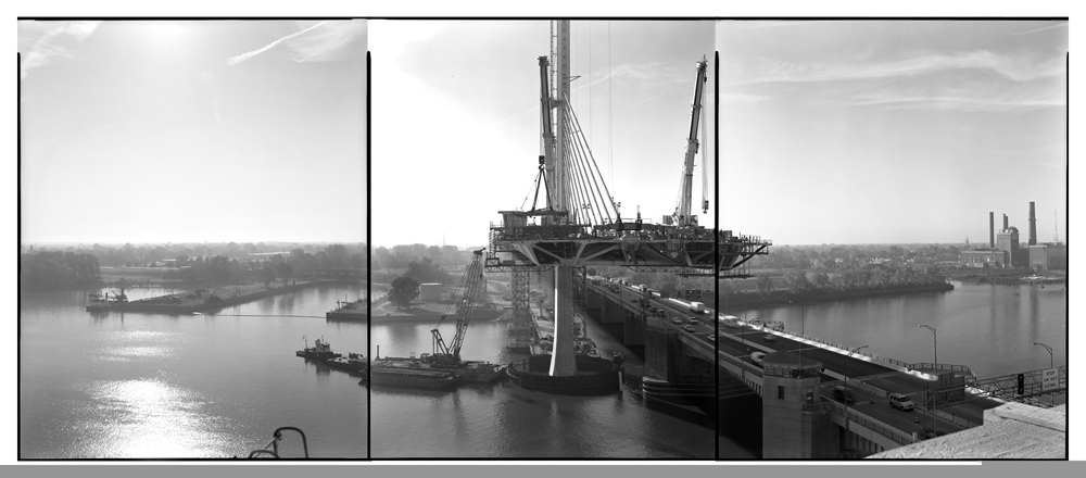Fig. 9. ©Lynn Whitney, Cantilever from the East, Toledo, 2007. Veterans Glass City Skyway Project. Triptych, gelatin silver prints, 10 x 24 in. overall. From the Portfolio A Bridge for the 21st Century. Collection of the Toledo Museum of Art, OH.