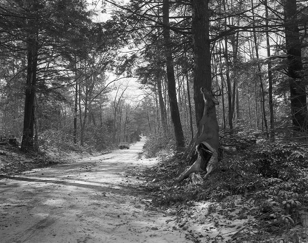 Fig. 4. ©Lynn Whitney, Field dress, off road, near Westminster MA, 1982. Gelatin silver print, 16 x 20 in. Artist’s Collection, OH