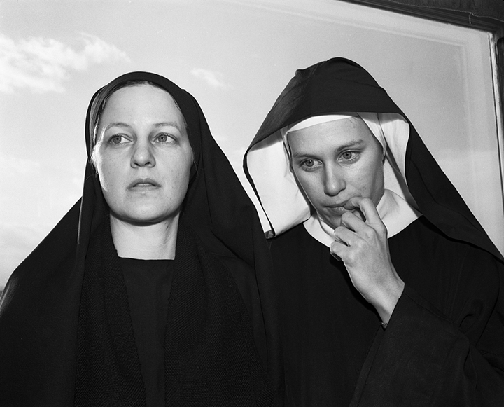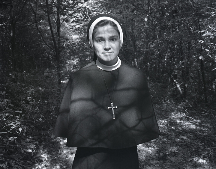 This aloneness and togetherness idea then led me to photograph women who chose to become Sisters in convents. I narrowed my focus in this project to novices or young nuns (Figs. 6, 7, 8). This work was a way for me to learn about a cloistered life whose sole purpose was one of devotion. Their daily practices were scheduled and their clothing was always the habit. The habit masked an individual’s full identity, delivering faces and gestures that were derived from a profoundly inward space.