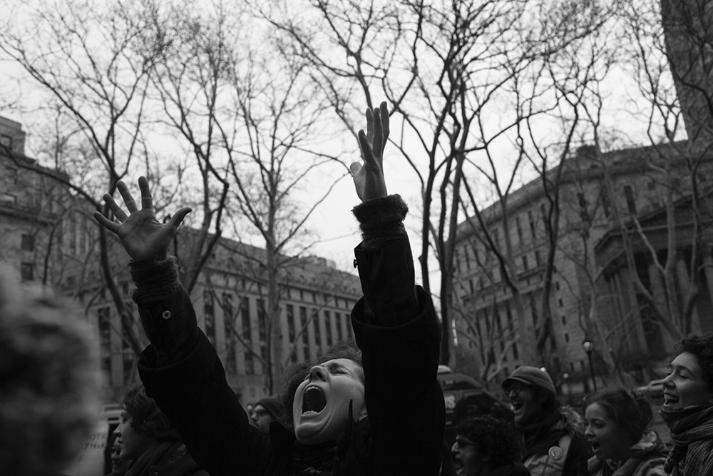 ©Andrew Lichtenstein, from This Short Life, A woman screams outside the Federal Plaza Immigration Court during a “Jericho Walk” protest around the building, New York City, New York, 2018