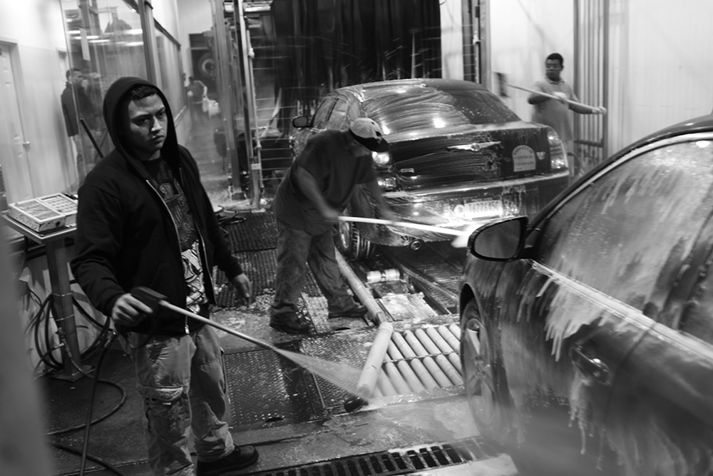 ©Andrew Lichtenstein, from This Short Life, Workers clean cars at a car wash being organized by Retail, Wholesale and Department Store Union (RWDSU), on Webster Avenue in the Bronx, New York, 2012