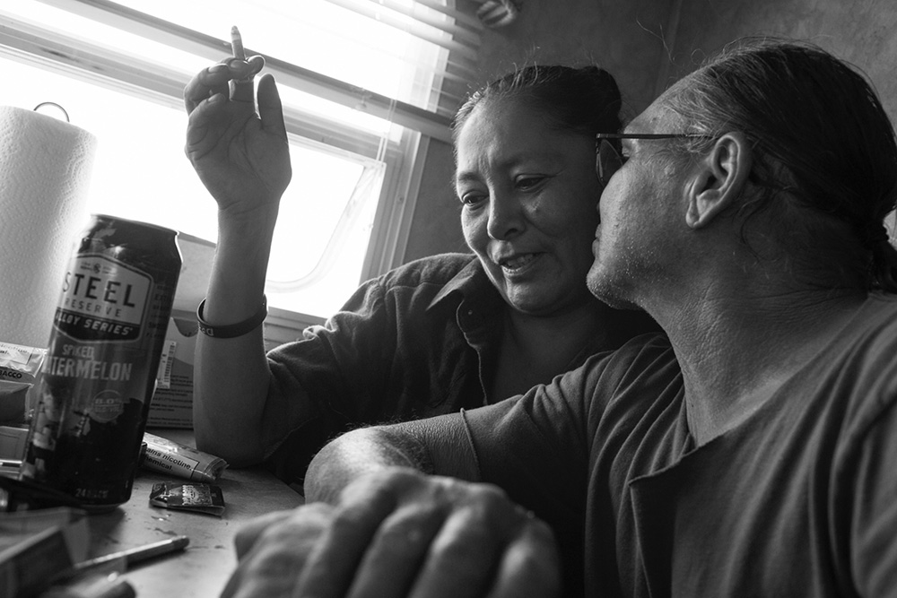 ©Andrew Lichtenstein, from This Short Life, Jasilyn Charger’s mother and a friend, Cheyenne River Reservation campgrounds, South Dakota, 2019