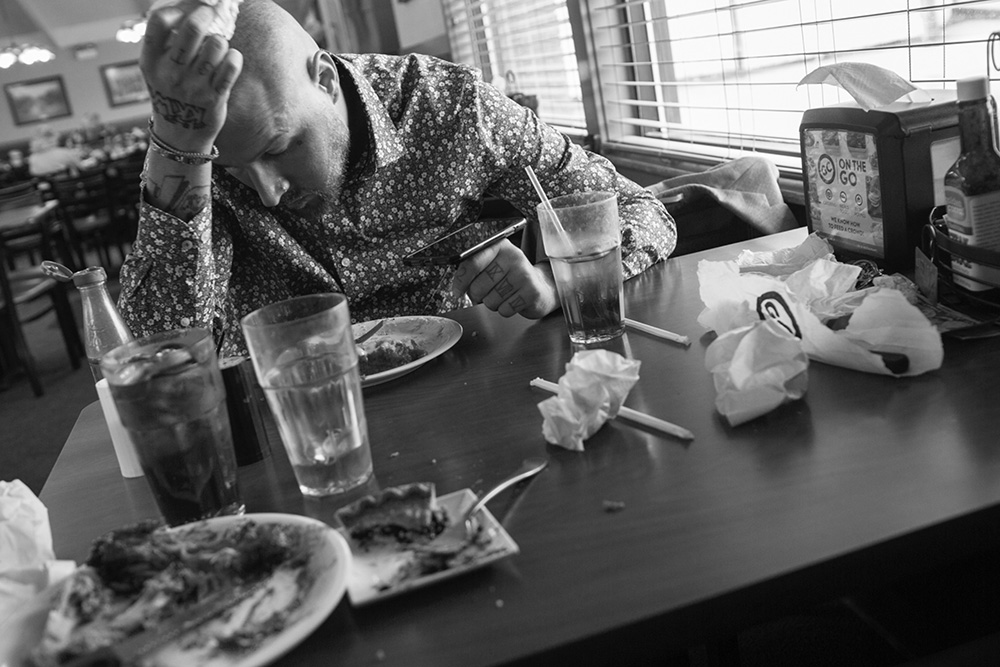 ©Andrew Lichtenstein, from This Short Life, Justin Ponton receives news that the electricity in one of the halfway houses he runs is about to be cut off for lack of payment, Huntington, West Virginia, 2019