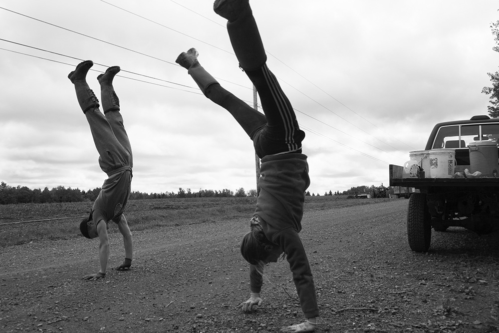 ©Andrew Lichtenstein, from This Shirt Life, Local teenagers play during a break from harvesting the potato crop, Bridgewater, Maine, 2018