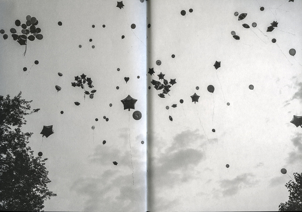 ©Andrew Lichtenstein, Spread from This Short Life, Balloons released in memory of those killed by the police, Powderhorn Park, Minneapolis, Minnesota, 2020
