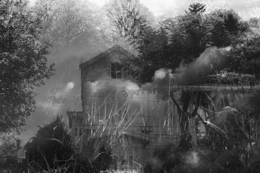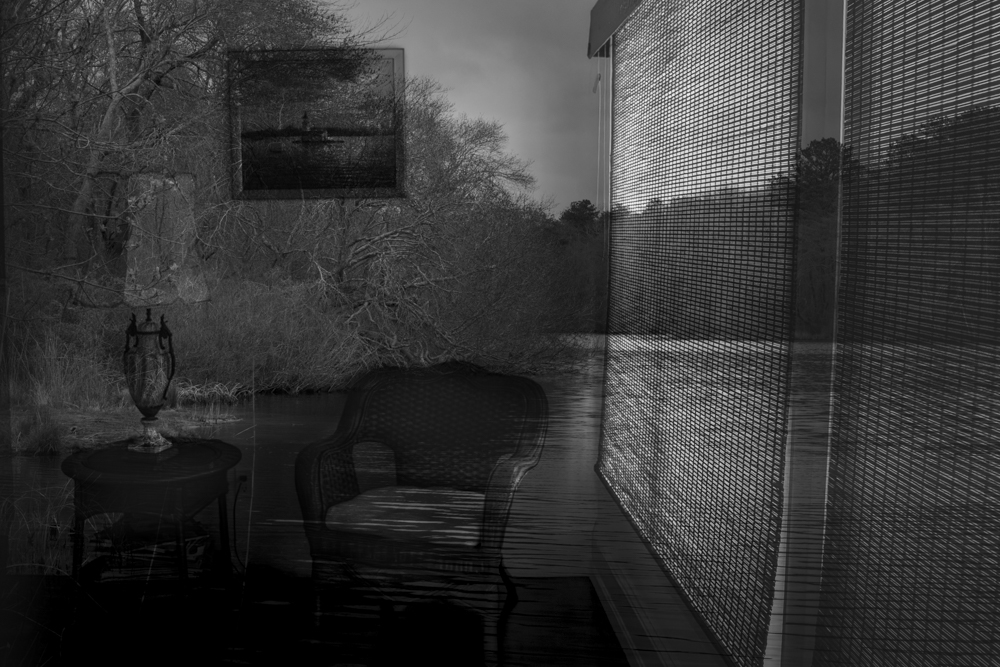 These images are part of an ongoing project that explores the meaning of a recurring dream I have. In this dream, I walk through a dense garden into a house. I walk through the rooms, which feel both familiar and strange at the same time, and enter through a door into another room full of shuttered windows. I open the shutters and see that the house is surrounded by the stillness of the sea. This is a garden and house I don’t recall ever being in, but it’s always the same garden, the same house, the same rooms, the same windows, and the sea. This is a dream I know intimately. The images are fragmented and layered and suspended, and then they dissolve and I wake up.