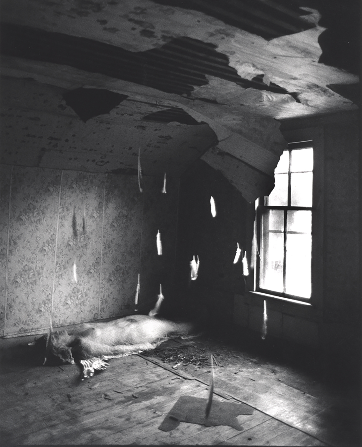 In the years when I was making the self-portraits, photographing myself was the ritual. I would also spend time in the space before photographing there; cleaning the space of debris, building an installation, and checking a compass to see if there might be a better time of day for light to come through a window or a door. It became important to me to spend time in the space before photographing there–opening to the mood of the place, and letting it have an impact on me, before jumping in to make images. It had something to do with letting go of the egocentrism that I would bring with me to the shoot.