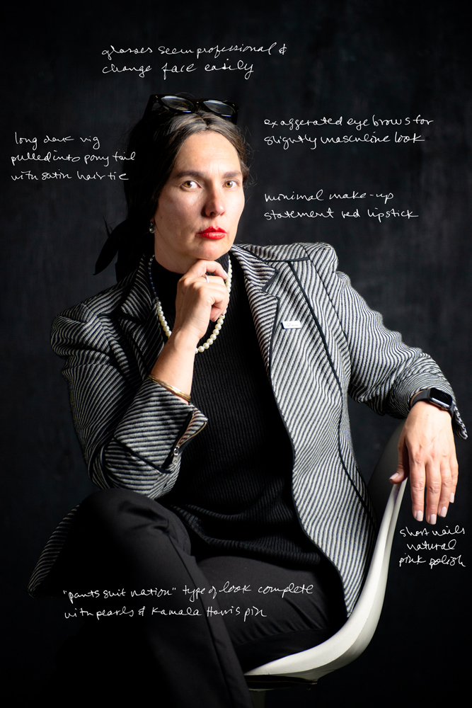 ©jessamyn lovell, Professional Woman Disguise (AKA “Laura”), 2021 Laura. Late 40s, early 50s. She’s a go-getter, borderline workaholic, possibly a bit of a fast-talker. Most effective in shopping malls, upscale restaurants, and the courtroom. While waiting in a courtroom for a defendant to show who I had to serve, Laura blends right in with the lawyers, paralegals, and legal parties.
