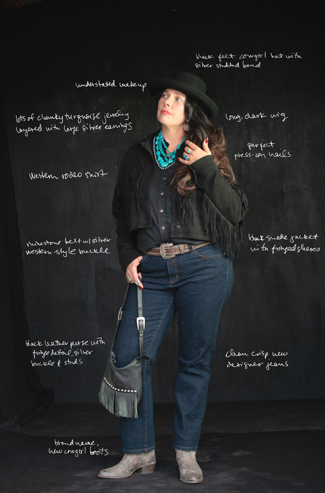 ©jessamyn lovell, “Cultural Tourista” Disguise, 2021 Developed as a performance persona during my training with international performance troupe La Pocha Nostra from 2016-2018, I began using “Cultural Tourista” as a disguise to conduct surveillance in touristy places like Old Town in Albuquerque, Santa Fe and Taos Plazas. She is particularly effective in these places because she blends so well with the retired, wealthy Texans whose second or third homes are in New Mexico.