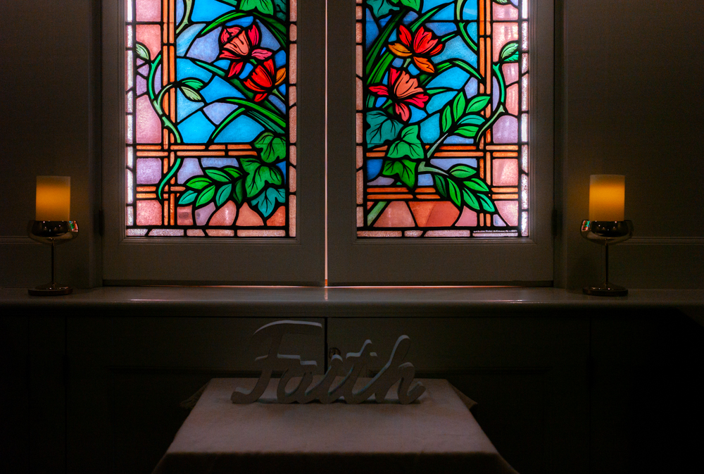 For some, the purpose-built, “always open” chapels and meditation rooms in hospitals and hospice houses are safe harbors offering quietude, ritual, and comfort along a fraught medical journey at end of life. For others, the natural world reveals itself as sacred ground. Punctuated by unexpected washes of light and devoid of people, these seemingly disparate settings draw attention to the relationship between our external environments and our internal worlds of beliefs and emotions.