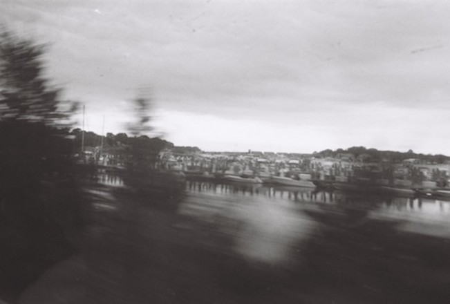 My experience in photography up until very recently has been limited to this “take first, think later” collecting mode, which has left me with tens of thousands of digital images to keep up with. I got interested in 35mm photography as a change of pace, only 36 exposures to deal with in a roll, sometimes even less. Perhaps I shouldn’t be surprised that trying to reign myself in backfired — I’ve taken 407 photos on the train in the past 18 months, and counting. I’ve even started double exposing film so I could save on developing costs. It’s a two part thrill: The rush of being on a moving train, and the rush of being surprised by the images I get back. Sometimes I attempt to retroactively identify and catalog the collection, but doing this without notes or points of reference is pure masochism. Most of the time I don’t try. Even so patterns eventually emerge — It’s become increasingly obvious I’m taking the same images over and over, even months apart. I’ve started to recognize what looks like the same tree overlooking the same harbor, for example.