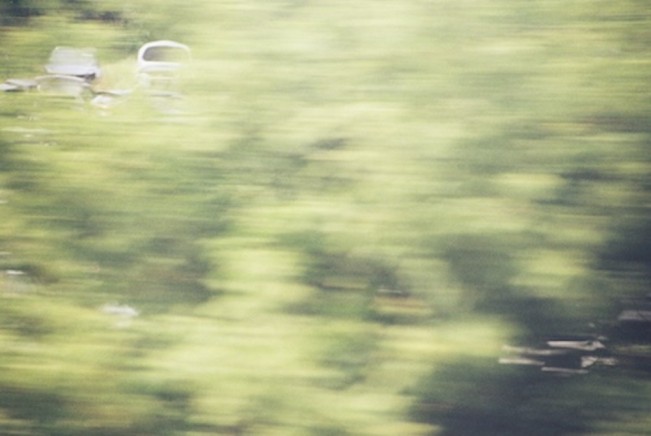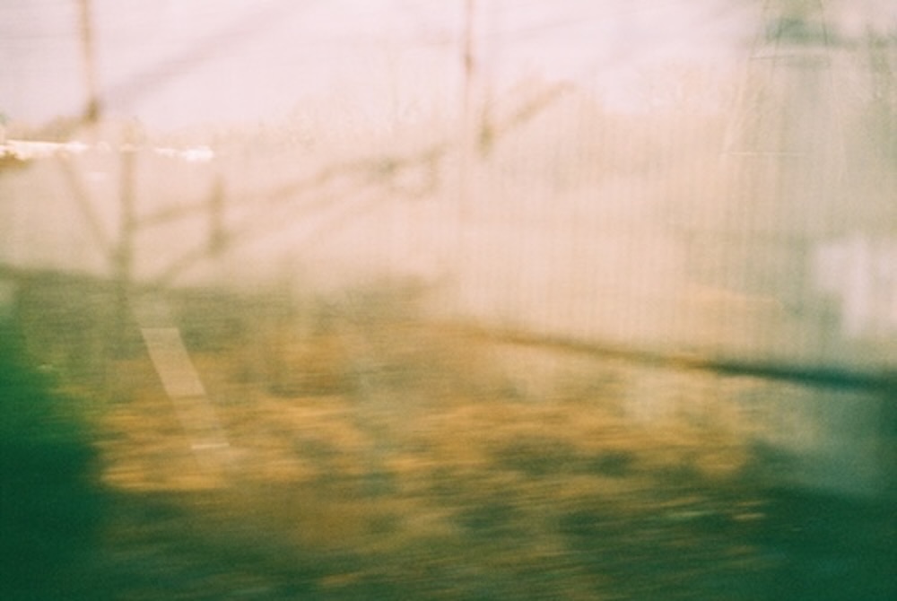 Their photographs ride the line of boredom in a mesmerizing way, catching glimmers of sun on water, reflections in glass, and, of course, rocks. When I look at their photographs, it makes me wish I never held an iPhone, as my attentiveness to the swirling world shortens every day.  The blur from the movement of the train carries us through these ideas, preventing us from overthinking the details within the frame. The photographs flatten and distort these open spaces, hypnotizing the viewer and inviting them to wander further into the wide-eyed flash of a momentary thought produced from curious eyes.