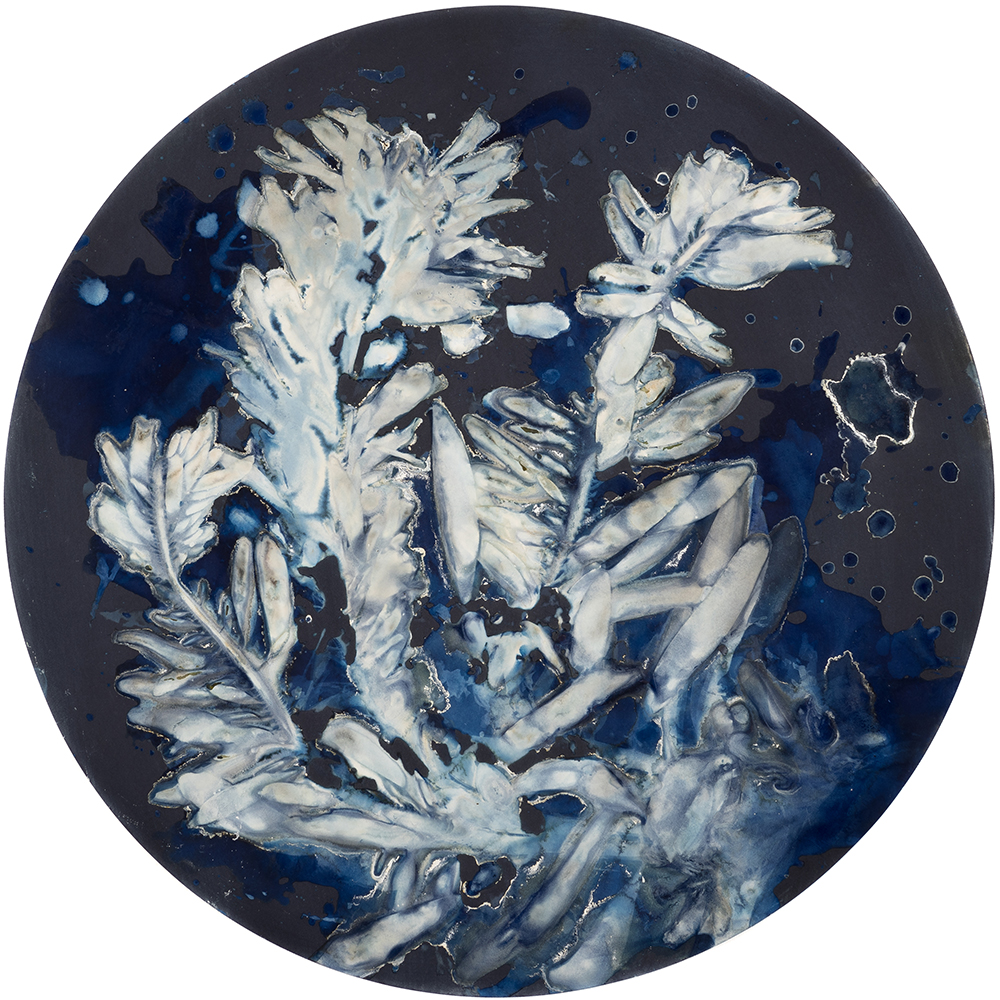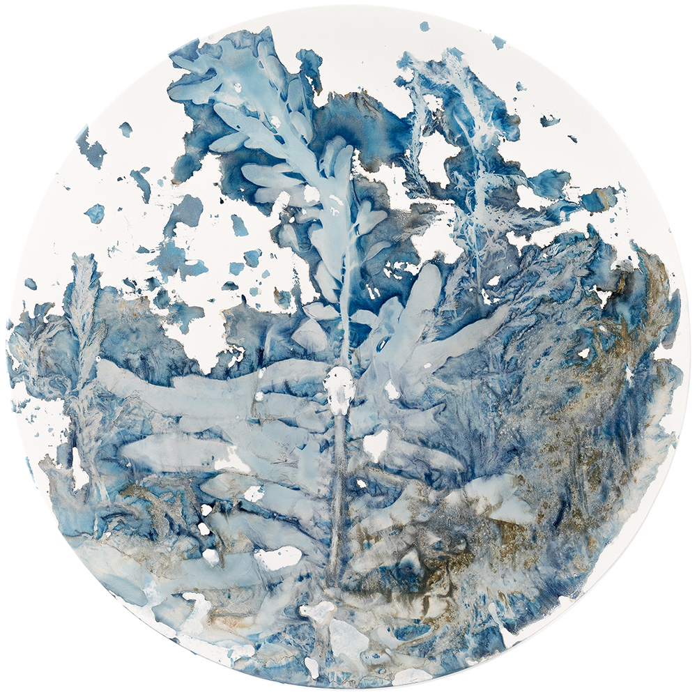 ©Paola Dávila, Salar (Salt) series, seawater sediments, Laminariales, and cyanotype emulsion on watch glass