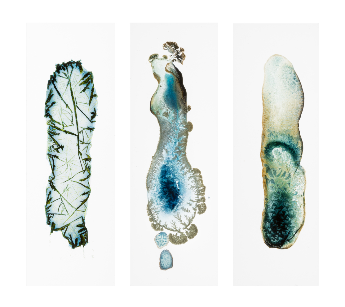 ©Paola Dávila, Salar (Salt) series, seawater sediments, Laminariales, and cyanotype emulsion on cover glass