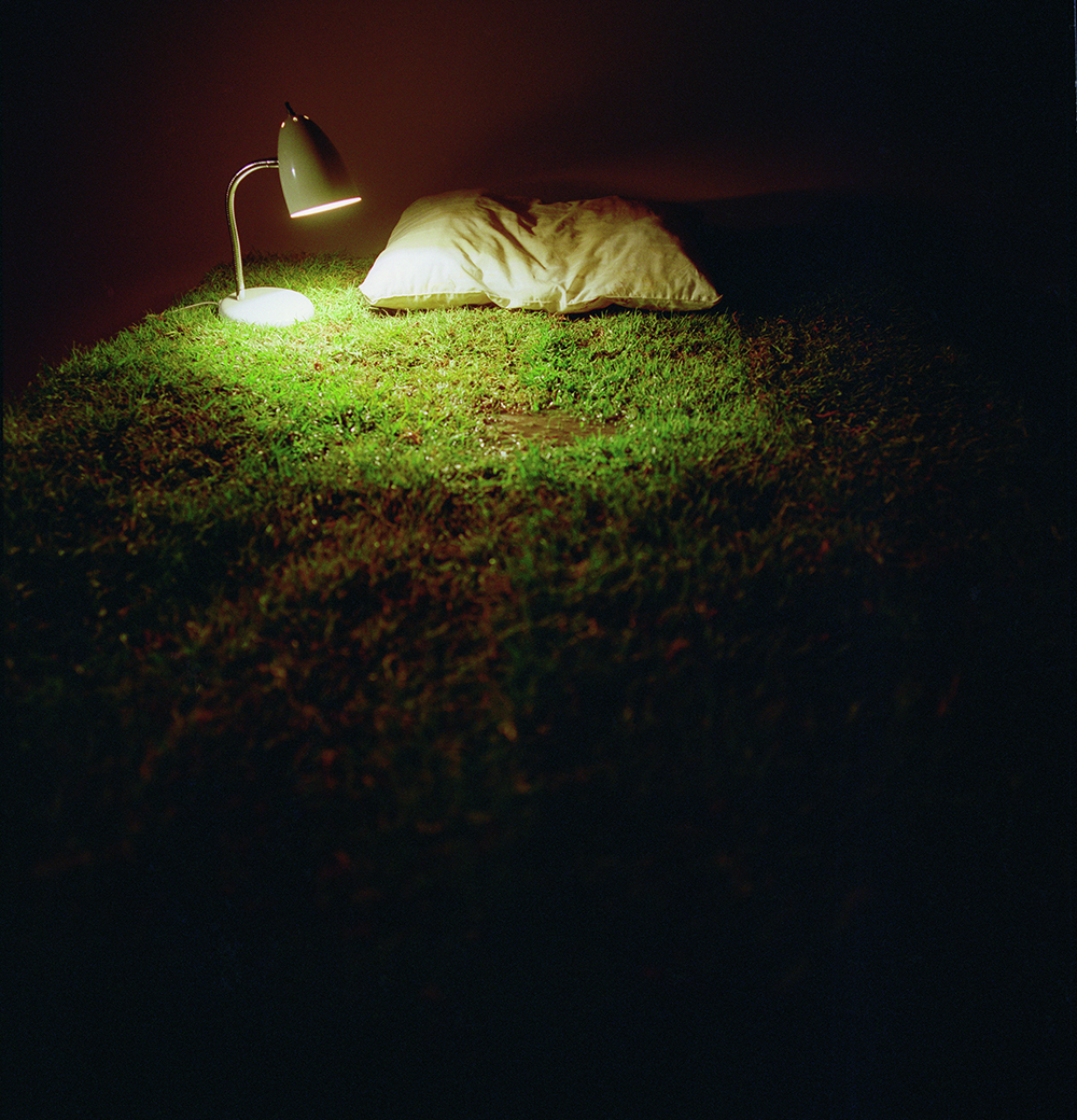 PD: Yes. Working with live-materials meant assuming a new rhythm and responsibility in my day-to-day life. I couldn’t hurry the process or impose a result on it, either. I had to walk through its growth. Look at it day after day and understand that the image depended on conditions that weren’t completely under my control. In Interior Seasons, for example, I ended up collaborating with a specialist biologist who cultivated his own mushrooms in Huitzilac. The ideal substrate for shiitake mushrooms to grow is holm oak, which is illegal to cut down, and there was a lot of interest in the community about how they were cultivated. So, when I sought him out to ask how I could cultivate them, he thought that my request was very strange. After a couple of phone calls to tell him about my project, he allowed me to collaborate with him. I went to his greenhouse and, in exchange, we went on identification walks in the area where I took photographs of local species for his records and research. For Interior Seasons I grew grass on beds, and mushrooms on pillows.