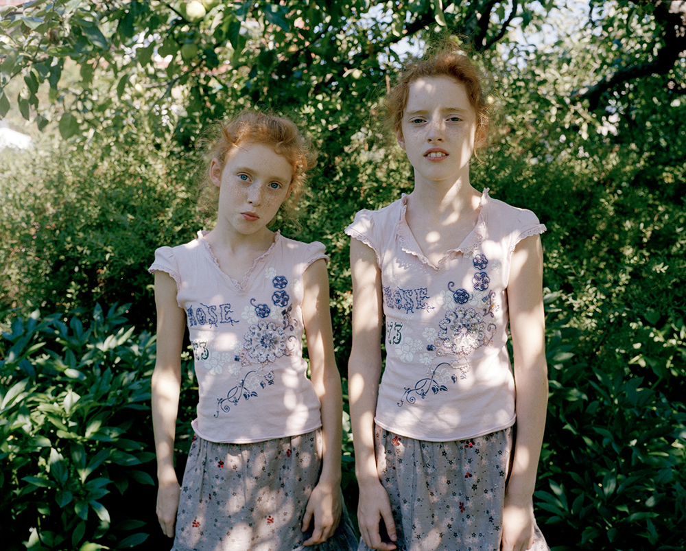 The other variation from the Nixon project was the way Shultz photographed his two subjects in the lush natural environment of Norway instead of posing them in a more traditional manner. As you progress through the years that Schultz photographed, you see the young red-haired girls become adolescents and finally young women. Time passes as naturally for his subjects as it does for the leafy trees of the Norwegian woods that surround them.